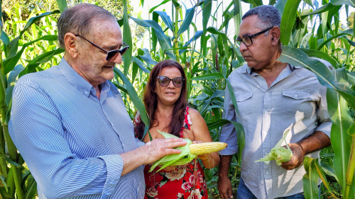 Na manhã desta quarta-feira, o secretário Moacir Smith Lima visitou a Associação Grapiúna dos Agricultores Familiares, perto do semianel rodoviário. Acompanhado de uma equipe técnica, ele conversou com os pequenos produtores e se animou com a produtividade do milho neste ano.