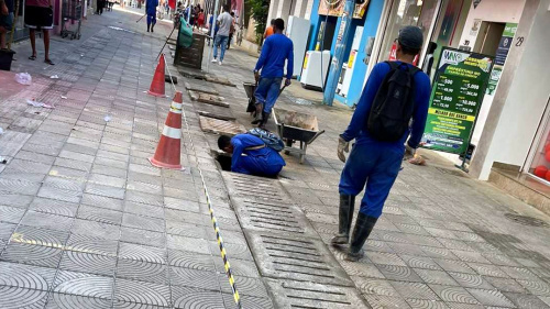 Depois de muitos anos alagando com qualquer chuva, o calçadão Marquês de Paranaguá, no centro de Ilhéus, está passando por uma reforma no sistema de drenagem. Ele está sendo limpo e desobstruído em toda a extensão para melhorar o escoamento da água e evitar o transbordamento.