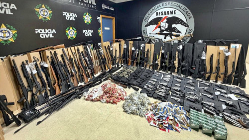Os agentes apreenderam 21 pistolas, 30 rifles automáticos e semiautomáticos, 51 revólveres e 64 espingardas semiautomáticas. No local, também foram encontradas cerca de 7.800 munições de diversos calibres.