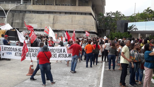 Do lado de fora da Alba, professores da Universidade Estadual do Sudoeste da Bahia (UESB), que paralisaram as atividades por 48h em protesto, se uniram aos policiais civis, que já estavam em greve contra a aprovação da PEC com distorções nos benefícios.